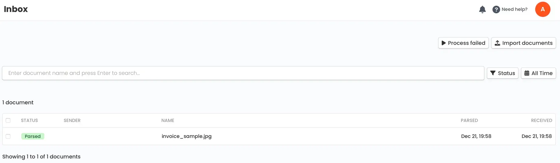 - Upload documents for parsing