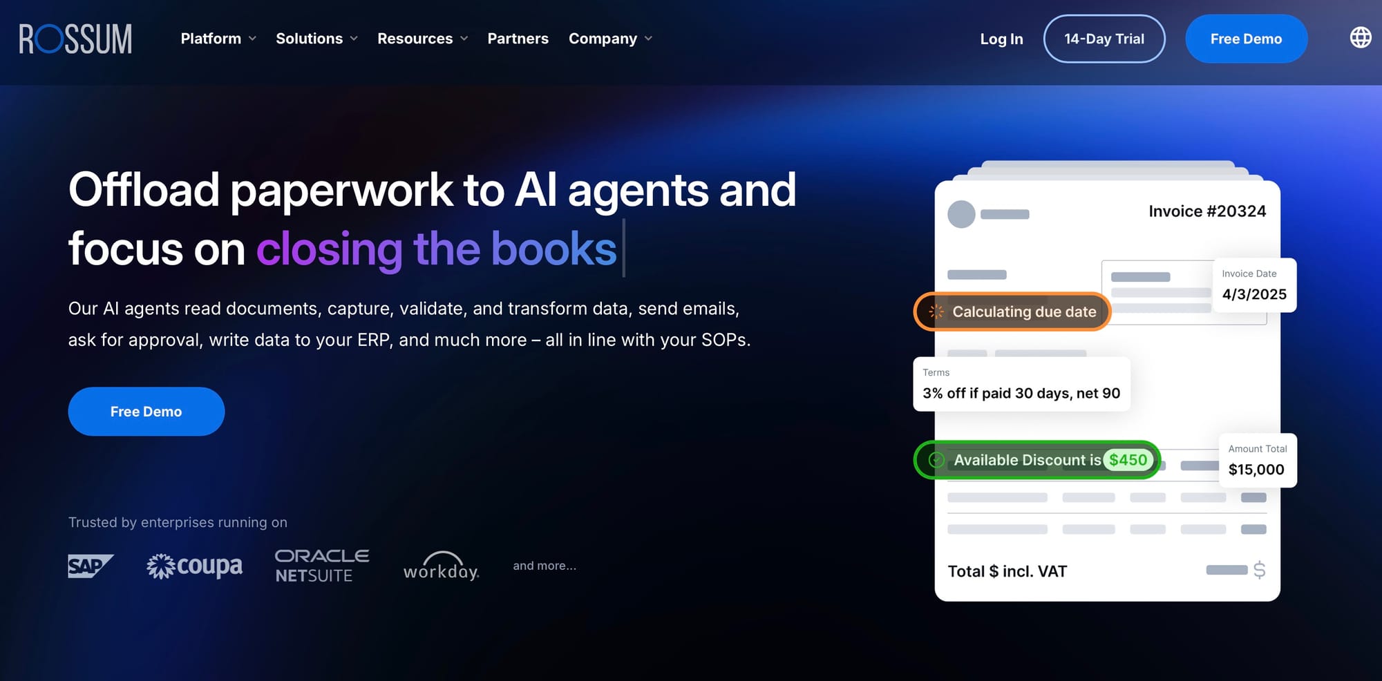 Rossum is mainly used for invoice processing and accounts payable automation in large organizations.